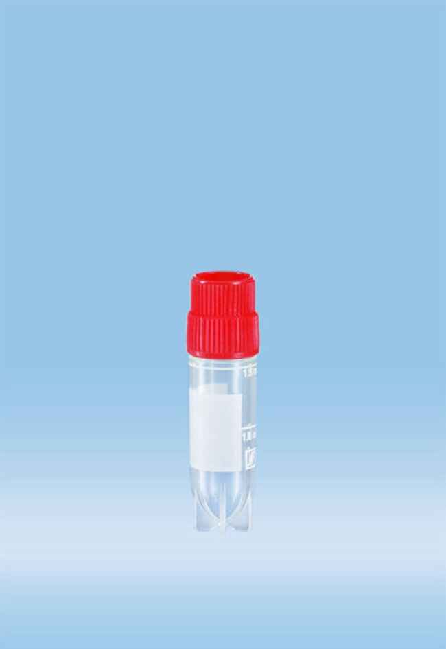Tube, Cyrogenic; CyroPure; Sarstedt; Vol.: 1.8mL; With external thread; Sterile; Red cap; Interlocking base enables single-handed operation in CryoRack 40 and most cryogenic racks; Fit standard cryo boxes and aluminium holders; 500/pk.
