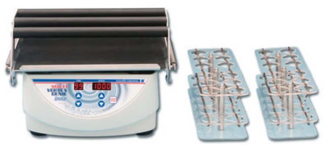 Provides same vortexing action as the Vortex-Genie. This heavy mixer/shaker will hold up to 24 tubes, vials, or cylinders of various sizes using the tube racks supplied with unit or use unit to vortex up to six 250mL flasks or bottles.