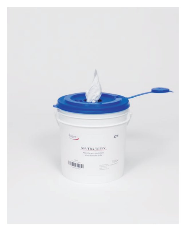 Neutra-Wipes™ rapidly neutralize small formalin spills and absorb 30 to 50 mL of liquid. Neutralex™ products are certified by the California Environmental Protection Agency. The seal indicated that the formalin treatment process results in non-hazardous drain safe waste.