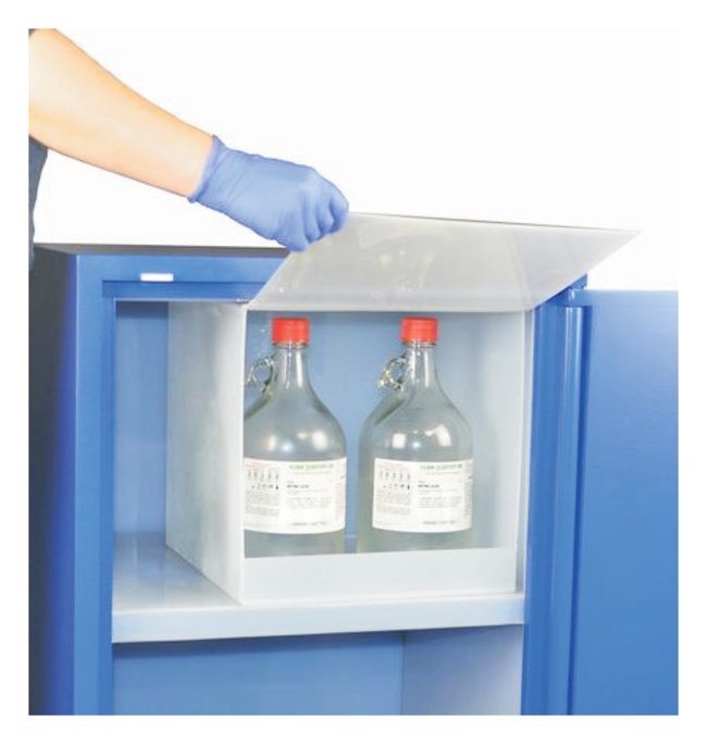 Slide-in isolation compartment accessory for acid cabinets (Cat. No. S51072MF and S51073MF).