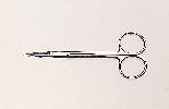 Delicate Scissors^ Stainless steel scissors with delicate tips. Curved. Length: 115mm.