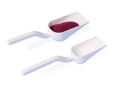 Scoop, Bent Handle, 2oz, Sterileware* PK10^ FDA grade polystyrene, sterile, keeps hand further from sample reducing possibility of sample contamination and exposure of substances on hands, flat bottom keeps scoop upright, use as weigh boat, individually wrapped. 10 per pack, 10 packs per case