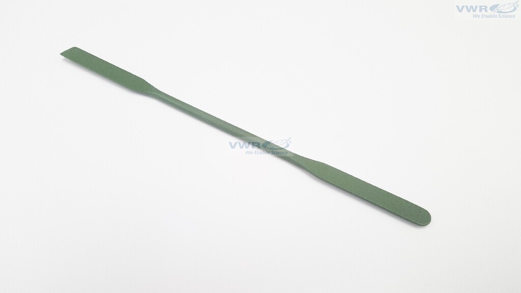 VWR PTFE-Coated Spatulas are available in a variety of styles to accommodate various laboratory tasks. All spatulas feature stainless steel construction with a PTFE coating and are passivated and compatible with Gamma/ETO/Autoclavable sterilization methods. The VWR spatula with one square end and one round end measures 17.8 cm (7") in length, Cat. No.: 10806-408. The VWR spatula with one round end and one tapered end measures 20.3 cm (8") in length, Cat. No.: 10806-412. The VWR Lab scoop measures 16.5 cm (6.5") in length, Cat. No.: 10806-415. The VWR Hayman spatula is also available, Cat. No.: 10806-410.