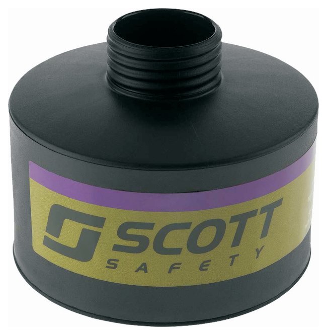 Cartridge-type filter media is compatible with Scott full-facepiece respirators using 40mm thread connections. An accessory adapter allows the filter media to be used with other Scott facepieces including the Scott-O-Vista™, AV-2000™ and AV-3000™.Offered for domestic preparedness/counterterrorism applicationsAppropriate for (though not NIOSH approved against) various chemical warfare agents and tear gasShips in a sealed foil bagShelf life: 3 years in original packagingComplianceMeets or exceeds the C2A1 performance requirements for DMMP, Sarin (GB) and cyanogen chloride (CK).