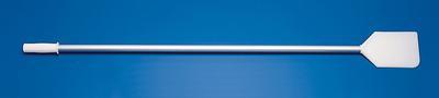 Long-Handled Scrapper^ Rigid nylon scraper with slight flexibility. Attached to fiberglass handle with sleeve. Grooved handle provides comfortable grip when reaching into deep vessels. Scraper/paddle is 114x178mm long with one rounded corner. Length: 152mm.