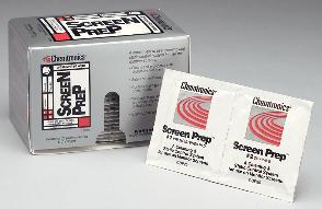 Screen Prep* Presaturated Wipes^ Dry/wet wipe cleaning system. Dry wipes for monitor screens; wet wipes for static dissipative treatment with disposable applicator. Remove dust, dirt, oils. Control static-generated contamination. Each dry and wet wipe hermetically sealed to prevent evaporation.