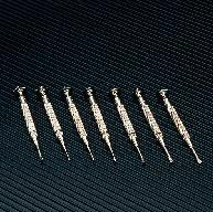 Six-Piece Jewelers Screwdriver Set^ Made of hardened alloy steel and supplied in a plastic pouch. Top is a hexagonal swivel knob. Blades do not swivel. Blade widths: 0.063cm, 0.101cm, 0.139cm, 0.177cm, 0.203cm and 0.254.