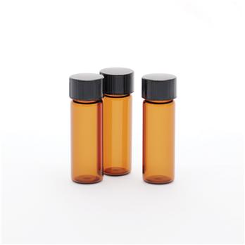 Vials and Phenolic Caps with PTFE-Faced / White Rubber LinersManufactured from amber 203 borosilicate glassClosed top black phenolic closures attachedClosures with PTFE-faced / white rubber liners or white rubber linersVials packaged in corrugated trays with partitio