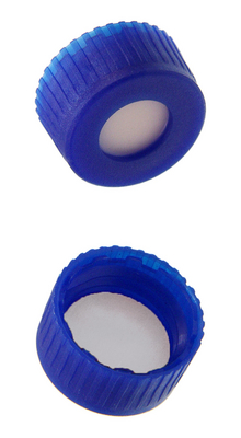 Autosampler Blue screw top Cap^ With bonded tan silicone rubber / PTFE septa. For use with 9-425mm, 12x32mm vials. AQ brand 1000/case.
