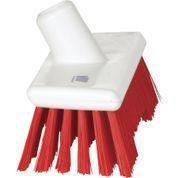 Vikan* Deck scrub Narrow Flared 9.1in^ Vikan* Deck scrub Narrow Flared, Color: Red, Block Material: Polypropylene, Bristle Material: PES, Bristle Stiffness: Stiff, for cleaning difficult-to-reach and constrained areas, clean into awkward corners & recesses, Width: 2.8in, Height: 3.7in, Length: 9.1i
