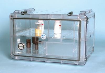 Desiccator^ Secador* Desiccator, Gas-Purge, Cabinet, Clear, Horizontal, Stackable up to 3 units high, Chemical resistant, Rear mounted gas ports, Large door with patented seal design, Oven-style door opens down, Perforated shelves, Model:, Easy-to-view digital hygrometer, 1.9 cu ft internal volume