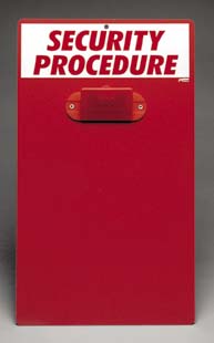 Security Procedure Clipboard^ Made from heavy-duty red poly, clipboard allows safety procedure information to be conveniently carried and posted for immediate access. 43.2Hx24.1Wcm.