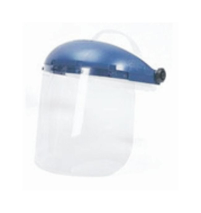 Chemical-splash resistantExtreme impact strengthRatchet headgear suspension allows user to adjust size and tighten at the turn of a knobModels and Replacements17-289-B: Blue Plastic Crown with Rachet headgear (CE Certified)19-043-978: Blue Plastic Crown with Rachet Headgear and Clear Window17-289-1A: Window: 8 x 12 x 0.040 in.19-065-757: Window: 8 x 16 x 0.040 in. (CE Certified)Compliance17-289-B: Meets ANSI Z87.1 High Impact Standards, CUL certified to meet CAN/CSA Z94.3 Standards, CE certified; 19-065-757: CE certified