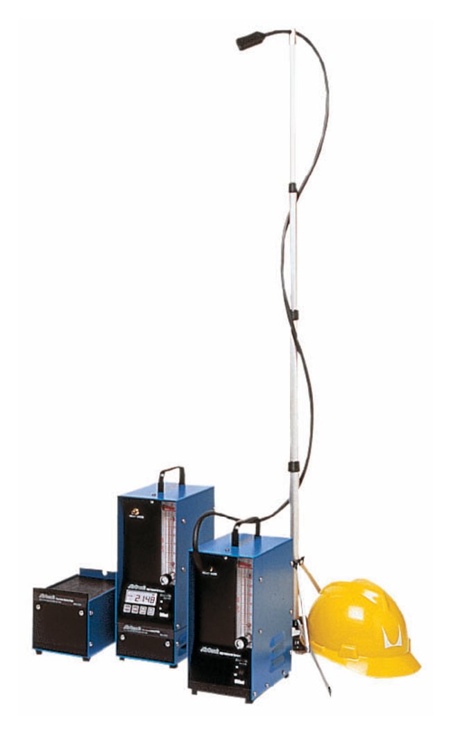Portable high-volume samplers use filter cassette (sold separately) to sample for particulates, dust, and chemical hazards. Constant-flow capabilities from 2 to 30L/min. at pressures to 7psi. Choice of basic nontimer model with AC power configuration or programmable models with AC or DC power configurations. Programmable timing functions include run, delay, start/stop, intermittent run, and hold times. Adjustable mast stand extends filter cassette into breathing zone and keeps it independent of sampler, allowing vibration-free collection of particulates.Order InfoRequires battery pack for operation (order separately, below). Battery packs are rated at four hours and are stackable for up to eight hours of sampling. Measure 5 1/4L × 7 1/2W × 10 1/4 in.H (13.3 × 19.1 × 26cm). Net weight: 12 lb. (5.4kg).