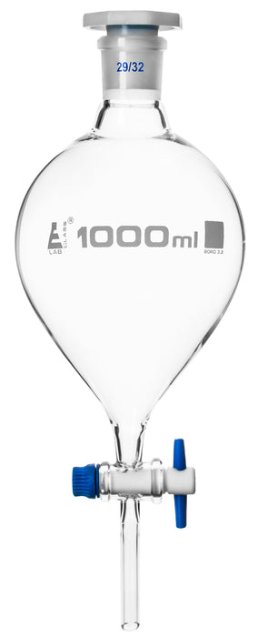 Made from borosilicate glassWith PTFE key stopcockPear-shaped