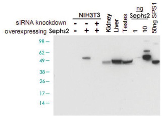 Rabbit polyclonal antibody raised against full-length recombinant Sephs2.