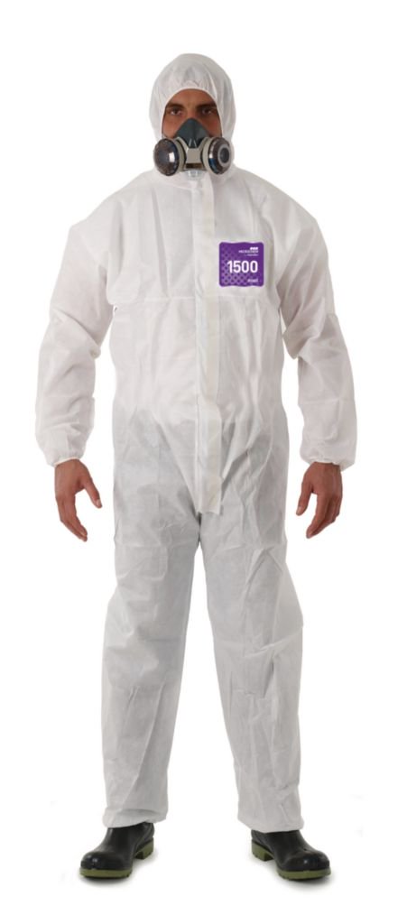 Microchem By Alphatec Coverall, Serged Collard, 2Xl^ Microchem By Alphatec Coverall, Serged Collard, Size: 2Xl, 3-Piece Hood & Attached Boots, Elasticated Hood, Wrists And Ankles, 2-Way Front Zipper With Storm-Flap, Particulate And Light Liquid Spray Protectio