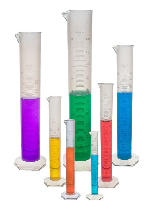 Graduated Cylinder - Premium Polypropylene, Hexagonal Base - Class B, Pack of 7
