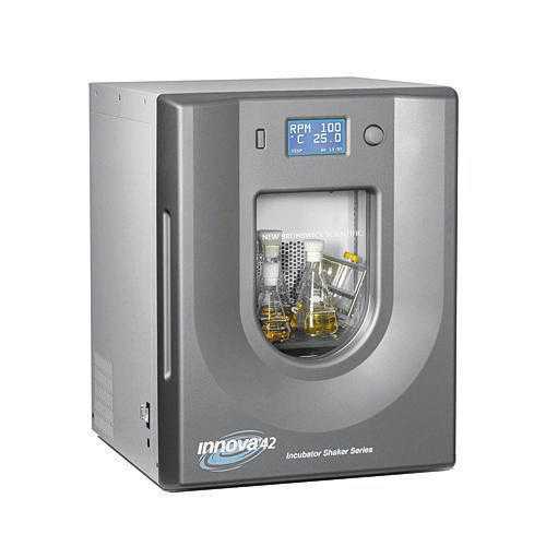 New Brunswick* Innova* 42 Stackable or benchtop incubator shaker 2.5 cm^ New Brunswick* Innova* 42 Stackable or benchtop incubator shaker, Cast iron triple-eccentric counterbalanced drive, Programmable, Large viewing window/ internal light, Built-in water