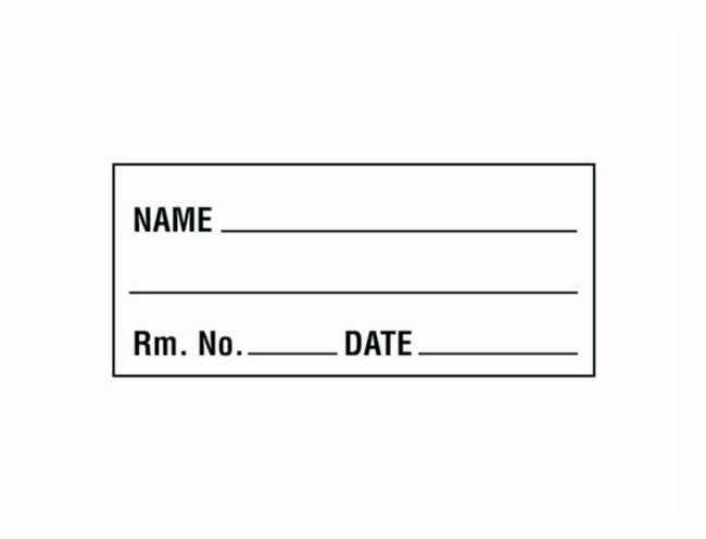 Contains locations for name, room number and dateTape with removable adhesiveWhite with black inkSize: 2.54 × 5.72cm (1 × 2.25 in.)