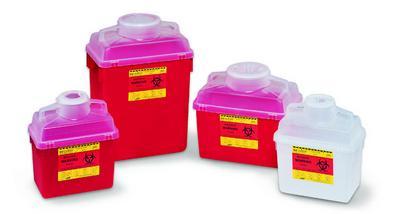 Nestable Sharps Collectors^ Clear Top/Open. 14 qts. Solid cap closure for leak resistant transit. Autoclavable.