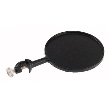 The Support Shelf is manufactured from durable cast iron with a raised rim. The shelf diameter is 5 " (127mm) and has a 5/16 " thumbscrew in the muff. The unit has a black powder-coated finish.