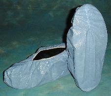 Dura Shoe Covers^ Made of spunbound polypropylene bound to an exterior layer of compressed polyethylene (CPE) film. Seamless design effectively contains particulates from street shoes. Dimensions: 40.6Lx16.5Hcm. Relaxed opening: 12.7cm. Stretched opening: 27cm. Universal size. Color: lilac.