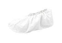 Irradiated non-skid shoe covers have been engineered to optimize skid resistance, barrier protection, cleanliness, and comfort. They are gamma irradiated to a Sterility Assurance Level (SAL) of 10^-4 to address the concern of bio-burden contamination. Manufactured in an ISO Class 8 (FED-STD-209E Class 100,000/M6.5) cleanroom. The shoe covers feature abrasion resistance of 1000 (sole) and non-skid soles that provide maximum traction on wet and smooth surfaces with a superior coefficient of friction. They are constructed of impervious material and have a clean, low-linting fabric. Shoe covers are rigorously tested and manufactured in an ISO Certified facility under stringent process controls to ensure that each product meets exacting quality standards and performs to specification. Products are validated through independent lab testing. Available in various sizes (Universal, M, L, XL), these shoe covers come bulk packed in sealed polyethylene bags contained within a larger carton liner. Each case is supplied with a certificate of irradiation. The white-colored shoe covers have a tearing strength of 5.7 (Widthwise Yarns), tensile strength of 20.3 (Filling), particle shedding (Helmke Drum) at Level I, bacterial filtration efficiency of >99.9%, H₂O resistance: Pass, and synth. blood penetration resistance: Pass. The weight is 58.58 g/m². Product codes are 414004-476, 414004-475, 414004-478, and 414004-479.