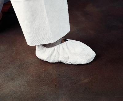 KLEENGUARD* SELECT* Shoe Cover^ Elastic top. Lightweight and breathable. Made from Microforce* Barrier SMS fabric for protection against dry particulates and light liquid sprays. Strong and abrasion-resistant for extended wear. White.