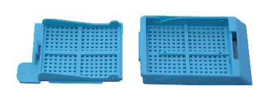 SHUR/Track* Biopsy Cassettes^ With Channel Track Hinge. Specifically Designed and Quality Controlled for use with Both Automated Labeling Instruments and Hand Marking Devices. Detachable Lids Are Removed and Packaged Separately. Perforations (0.75 X 0.75Mm) Occupy Over 69% of Surface Area. Aqua