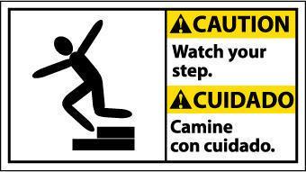Caution, Watch Your Step (Bilingual W/Graphic), 10X18, Rigid Plastic^