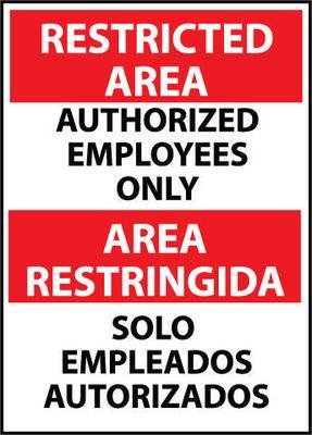 Restricted Area, Authorized Employees Only Bilingual, 14X10, Rigid Plastic^