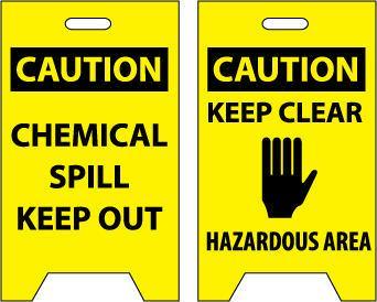Floor Sign, Dbl Side, Caution Chemical Spill Keep Out Caution Keep Clear .., 20X12^
