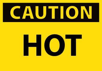 Caution Sign^ Legend: HOT. Size: 7.6x12.7cm.