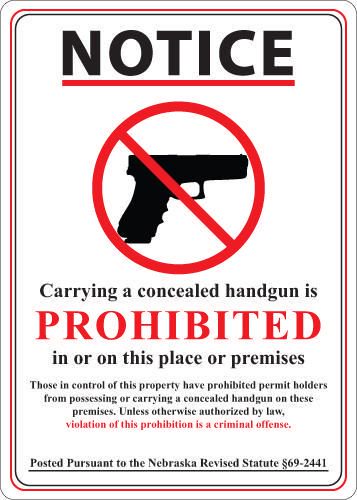 Sign Notice Carrying A Adhesive 14X10In^ Concealed Carry & Weapons Sign, Recycled Polystyrene Self-Adhesive, Nebraska Regulations, Resistant To Solvents, Moisture, Scuffing And Uv Exposure, High Tear Resistance, Ul Validated For Recycled Content, 14X10I