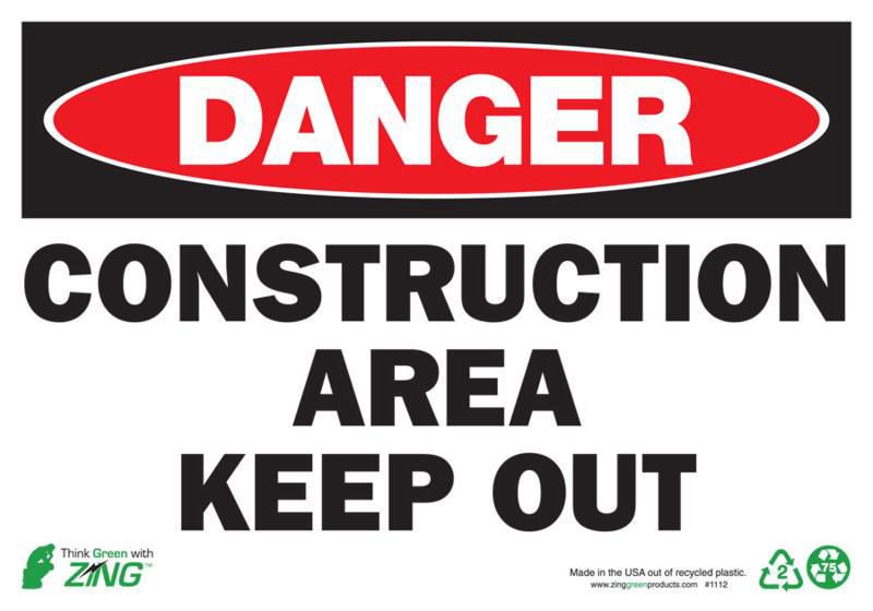 Sign Danger Construction Area Plastic 7X10In^ Danger Sign, Recycled Plastic, Construction Area Keep Out, Pre-Drilled Mounting Holes & Adhesive Tabs, Impact And Uv Resistant, Ul Validated For Recycled Content, 7X10I