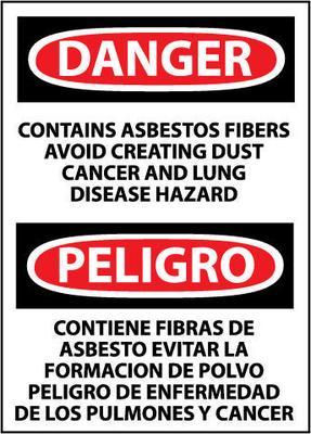 Danger, Contains Asbestos Fibers Avoid Creating Dust Cancer And Lung Disease Hazard Bilingual, 14X10, Ps Vinyl^