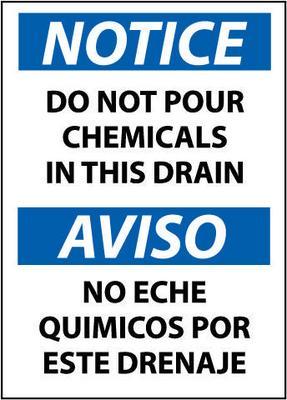 Notice, Do Not Pour Chemicals In This Drain (Bilingual), 14X10, Rigid Plastic^