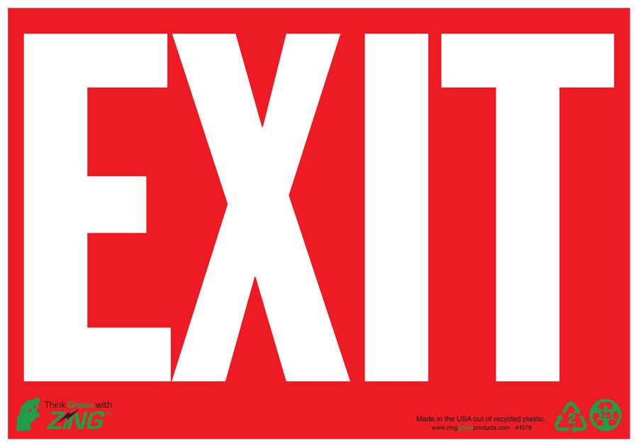 Sign Exit Glow Plastic 10X14In^ Exit Sign, Recycled Plastic, Glow In The Dark, Exit, Pre-Drilled Mounting Holes & Adhesive Tabs, Illuminates For Over 10 Hours To Exceed Astme 2072-00 Standards, Ul Validated For Recycled Content, 10X14I