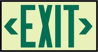 Glo Brite* Unframed Exit Sign^ For surface mounting. Single face sign with green letters. Immediately visible green. Photoluminescent. Nontoxic, non-radioactive. Size: 19x33x0.2cm. Letters: 2cm stroke with 15.2cm height. Life expectancy of over 25 years. Explosion-proof.