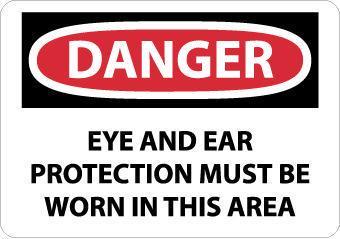 Danger, Eye And Ear Protection Must Be Worn In. . ., 10X14, Rigid Plastic^