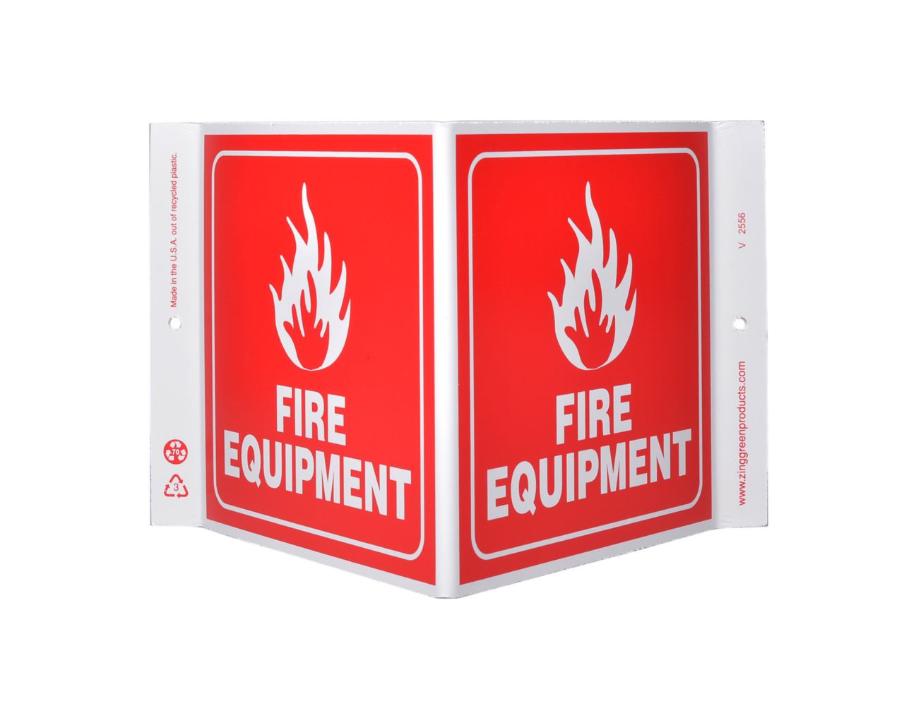 Sign Fire Equipment Plastic 7X12In^ Fire Sign, Recycled Plastic, Fire Equipment, 2 Sided V Shaped Projecting Provides Greater Visibility, Pre-Drilled Mounting Holes & Adhesive Tabs, Impact And Uv Resistant, Ul Validated For Recycled Content, 7X12I