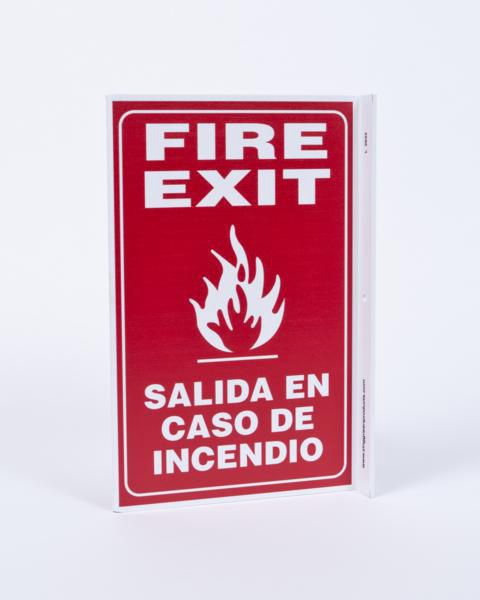 SIGN FIRE EXIT BILINGUAL PLASTIC 11X8 IN , Each