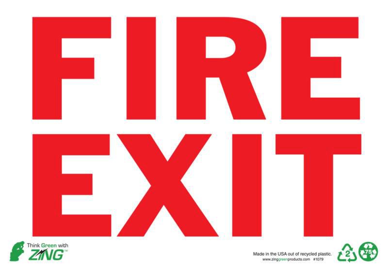 SIGN FIRE EXIT PLASTIC RECYCLED 10X14IN , Each
