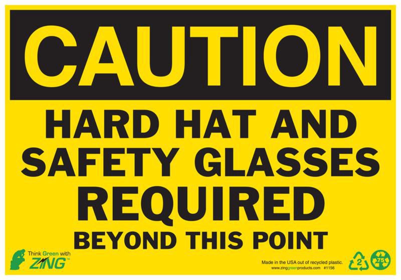 Caution Sign Recycled Plastic Hard Hat And Safety Glasses Required^ Caution Sign, Recycled Plastic, Hard Hat And Safety Glasses Required, Pre-Drilled Mounting Holes & Adhesive Tabs, Impact And Uv Resistant, Ul Validated For Recycled Content, Write On And Supports Osha Standard 1910.145, 7In X 10I