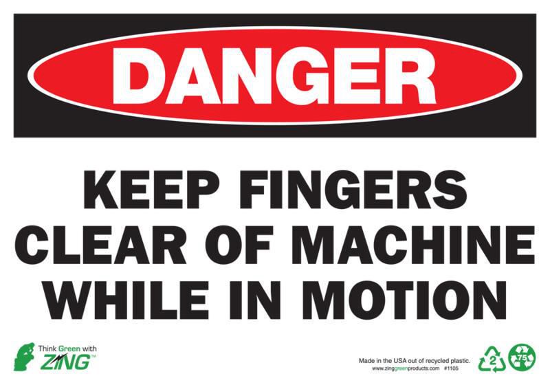 Sign Danger Keep Fingers Plastic 7X10In^ Danger Sign, Recycled Plastic, Keep Fingers Clear, Pre-Drilled Mounting Holes & Adhesive Tabs, Impact And Uv Resistant, Ul Validated For Recycled Content, 7X10I
