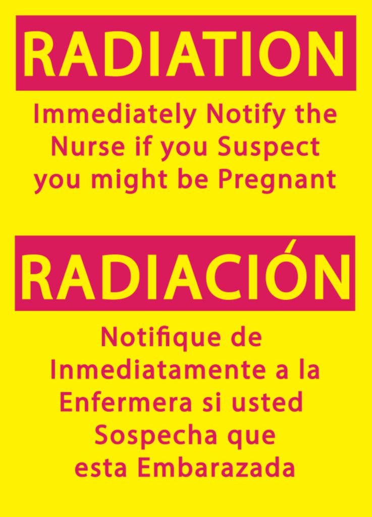 SIGN RADIATION NOTIFY NURSE PLST 14X10IN , Each