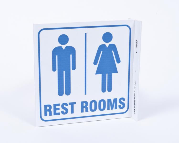 SIGN REST ROOMS PLASTIC 2 SIDED 7 X 7 IN , Each