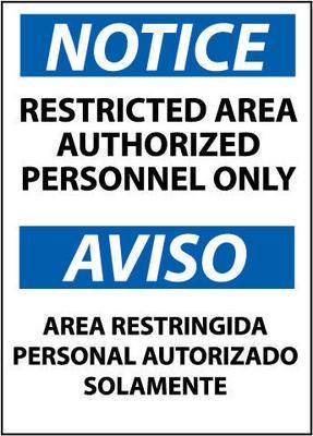 Notice, Restricted Area Authorized Personnel Only Bilingual, 14X10, Rigid Plastic^