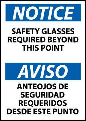 Notice, Safety Glasses Required Beyond This Point Bilingual, 14X10, Ps Vinyl^